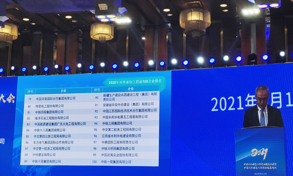 會議期間,中國對外承包工程商會發(fā)布了2020年度對外承包工程前100企業(yè),交通、電力、房建三個主要業(yè)務(wù)領(lǐng)域以及亞洲、非洲、歐洲、拉美四個市場30強名單。其中,我公司位列2020年度對外承包工程前100強企業(yè)榜單。此外,公司再次連續(xù)獲評2021年度對外承包工程行業(yè)A級企業(yè)稱號。