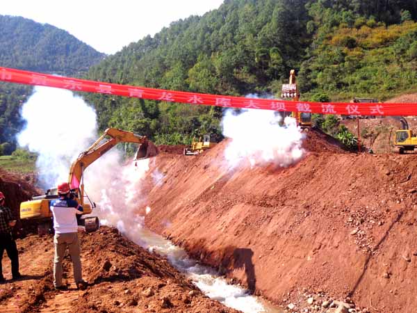 青龍水庫是一座供農(nóng)業(yè)灌溉、灌區(qū)農(nóng)村人畜飲用水、縣城供水為主的蓄水工程。水庫位于普洱市景東縣錦屏鎮(zhèn)、文龍鄉(xiāng)境內(nèi)的龍樹河上,水庫樞紐由攔河壩、輸水隧洞、溢洪道組成。我公司于今年6月中標(biāo)承建了大壩及溢洪道施工標(biāo),中標(biāo)價(jià)1.1億元。青龍水庫大壩圍堰的成功截流,標(biāo)志著該項(xiàng)目進(jìn)入全面施工階段。