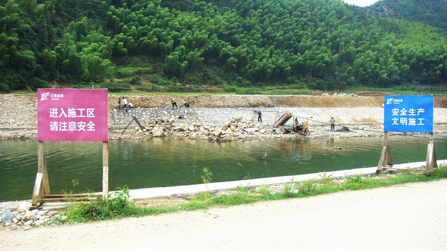 三清山管委會(huì)楓林鎮(zhèn)防洪工程施工現(xiàn)場(chǎng)安全警示牌