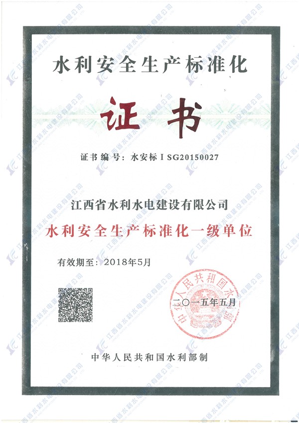 2015年6月,我公司順利通過水利部安全生產標準化一級單位的最終評審,獲得“安全生產標準化一級單位”證書,標志著公司安全生產首先邁入了“標準”時代。