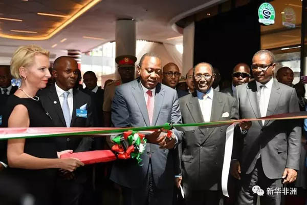 肯尼亞總統(tǒng)肯雅塔(前排中)為雙河商城正式開業(yè)剪彩