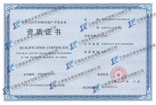 2014年8月22日,經南昌市住房保障和房產管理局審核批準,江西水建子公司江西元迪房地產開發有限公司房地產開發資質成功獲得延續。