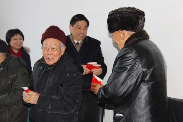 寒冬臘月,雪花飛舞。1月20日下午,水利廳黨委書記、廳長孫曉山率廳人事處處長周江紅、廳離退休干部處副調研員金光榮、曾三榮一行4人冒著嚴寒來我公司生活基地慰問離退休職工。公司董事長總經(jīng)理王元旦、黨委副書記王延軍、生活基地管理處相關負責人陪同慰問。