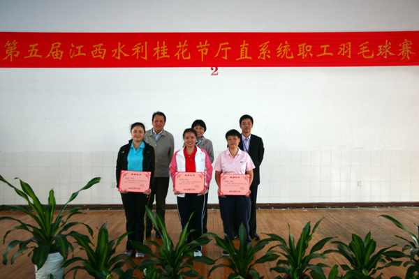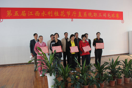 10月26日下午,江西省水利廳廳直系統職工羽毛球比賽在省水科院羽毛球館勝利閉幕,本次比賽共有9支代表隊100多名運動員參賽。廳副巡視員周江紅到場給獲獎單位和個人進行了頒獎。