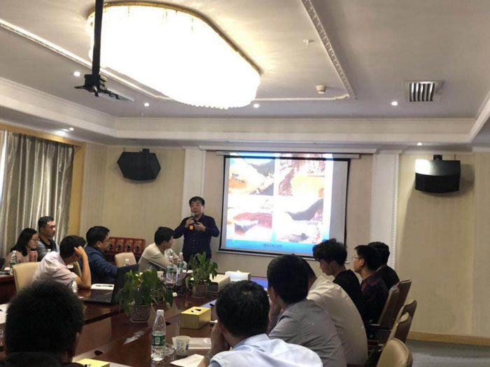 現(xiàn)場參觀結(jié)束后,學習團參加了技術培訓和經(jīng)驗交流會。總經(jīng)理助理杜凌主持了開班儀式。總工程師胡鴻煌、項目副經(jīng)理李成,對洋前壩水庫的大壩總布置、大壩施工導流、大壩及供水管道施工技術細節(jié)等,通過文字、圖片、視頻等組成的PPT課件為學員授課,并就學員提出的問題逐一進行了解答。